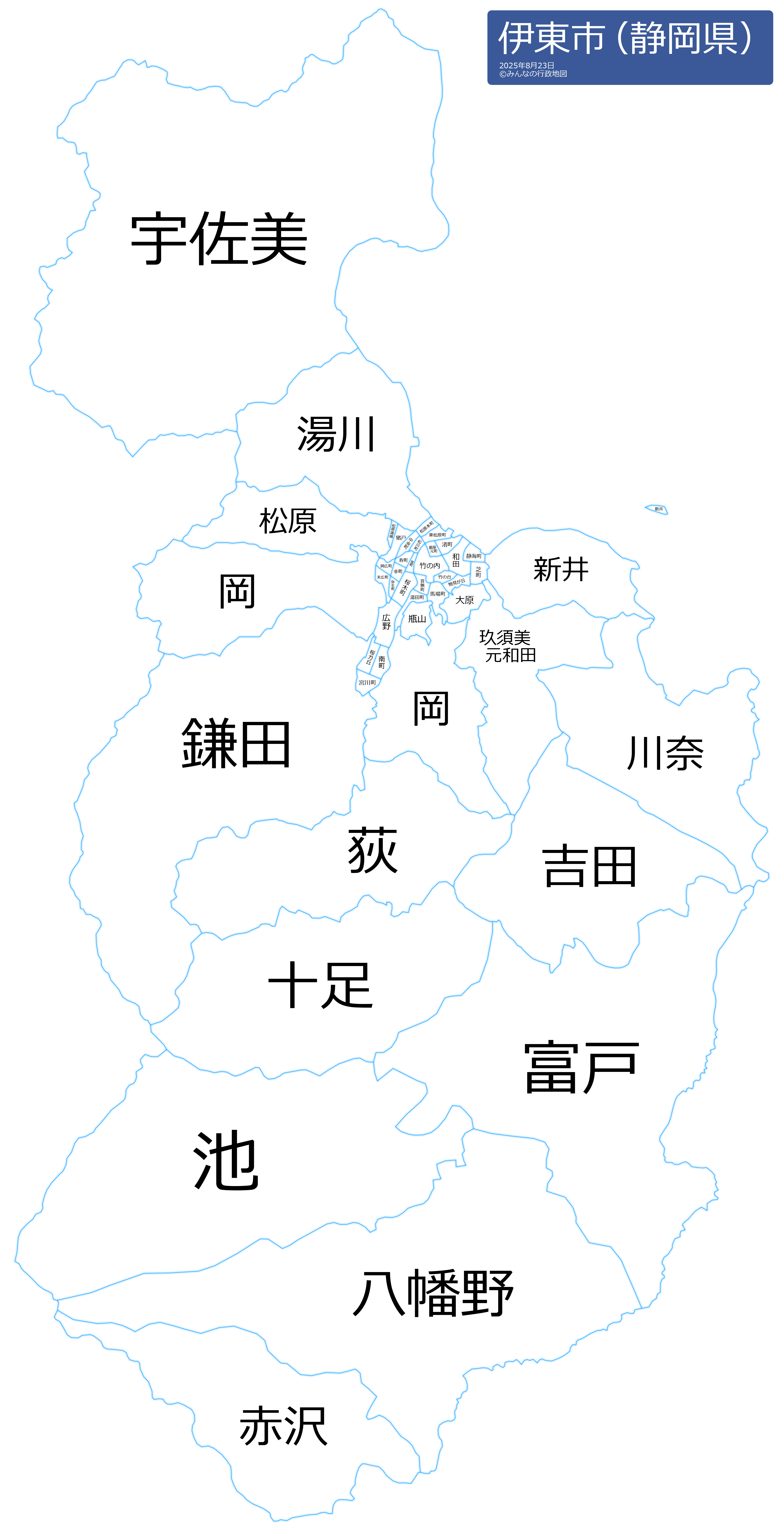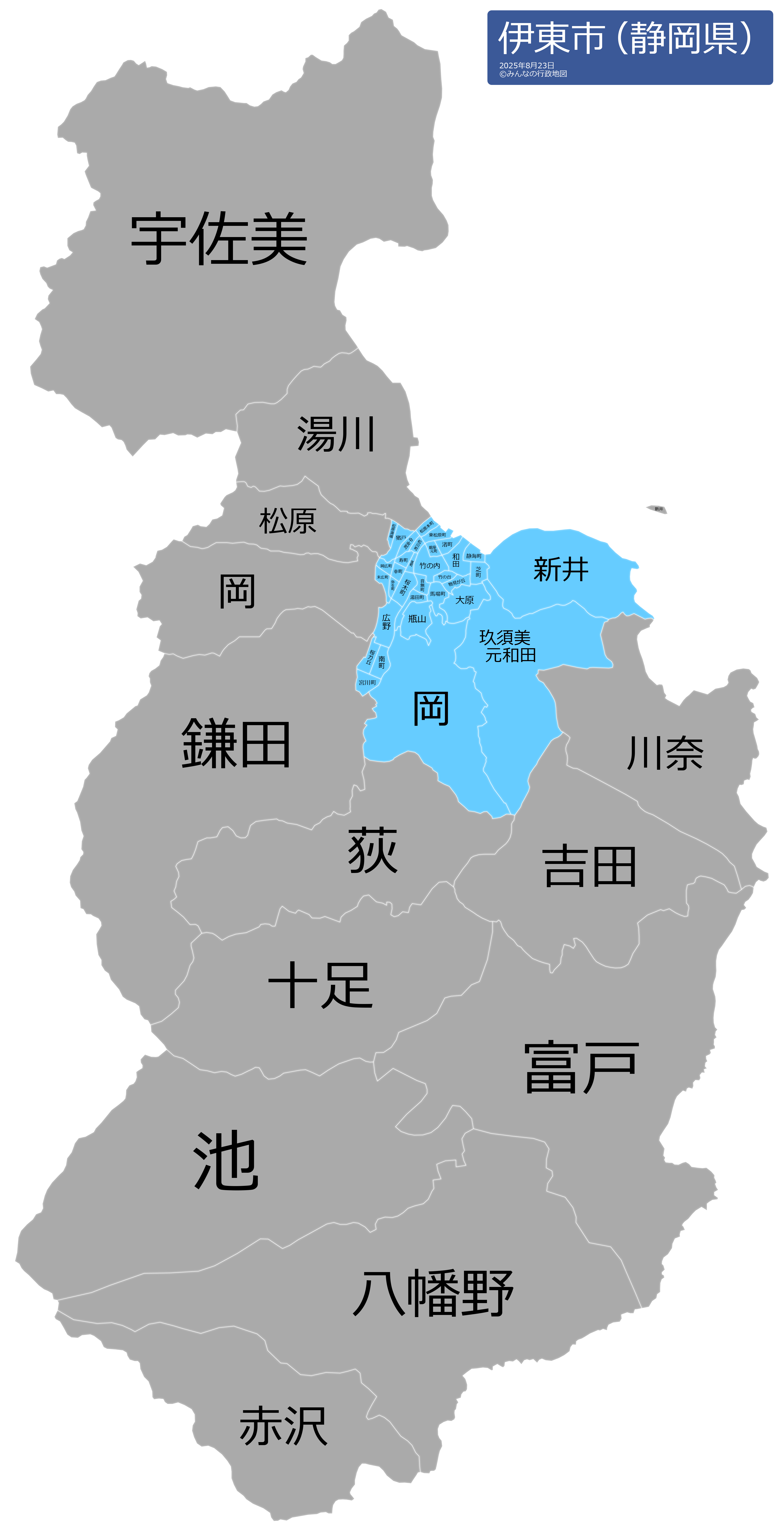 赤沢(あかざわ)新井(あらい)池(いけ)宇佐美(うさみ)大原(おおはら)岡(おか)岡広町(おかひろちょう)荻(おぎ)音無町(おとなしちょう)