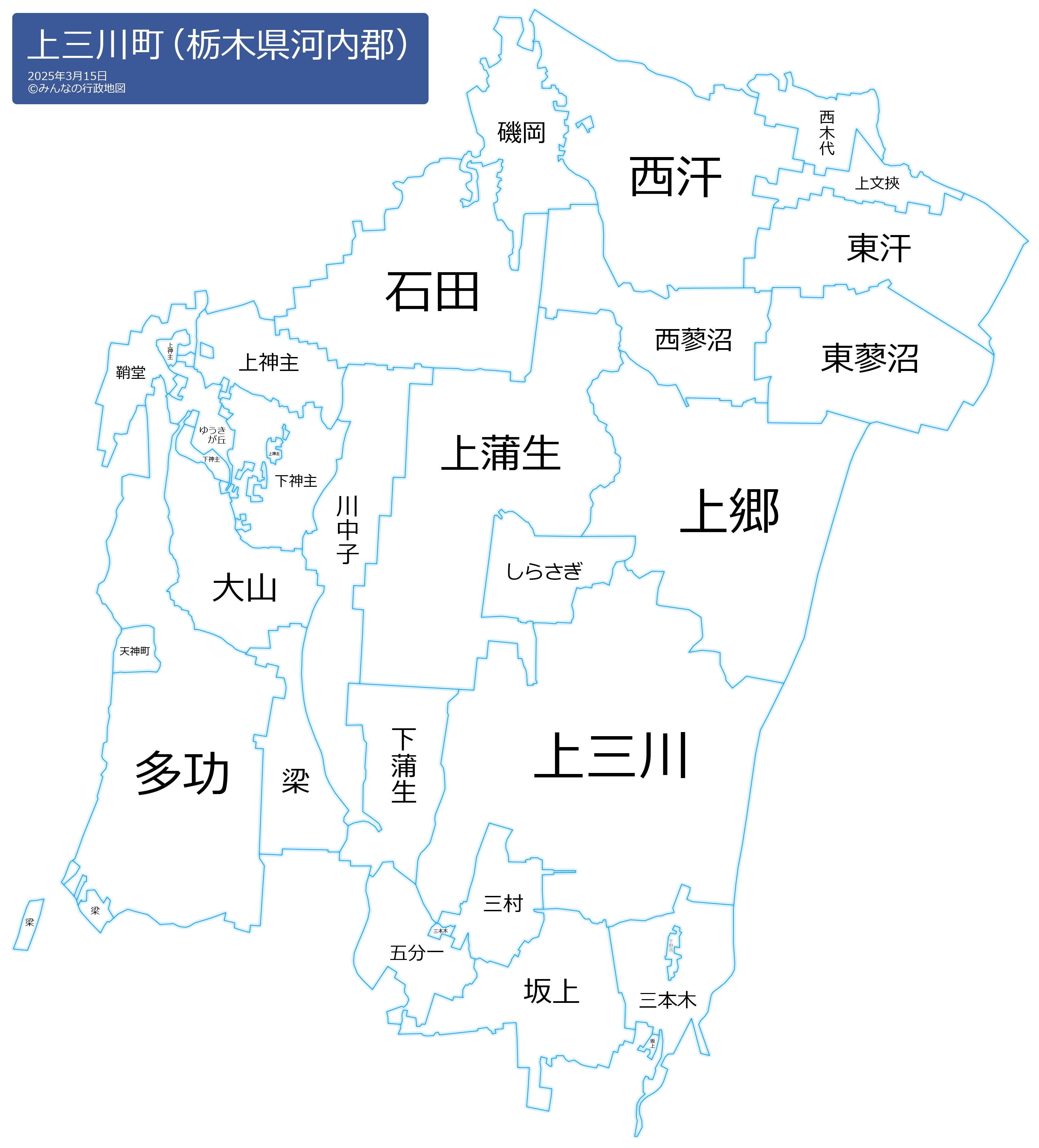 上三川町の地名と読み仮名
