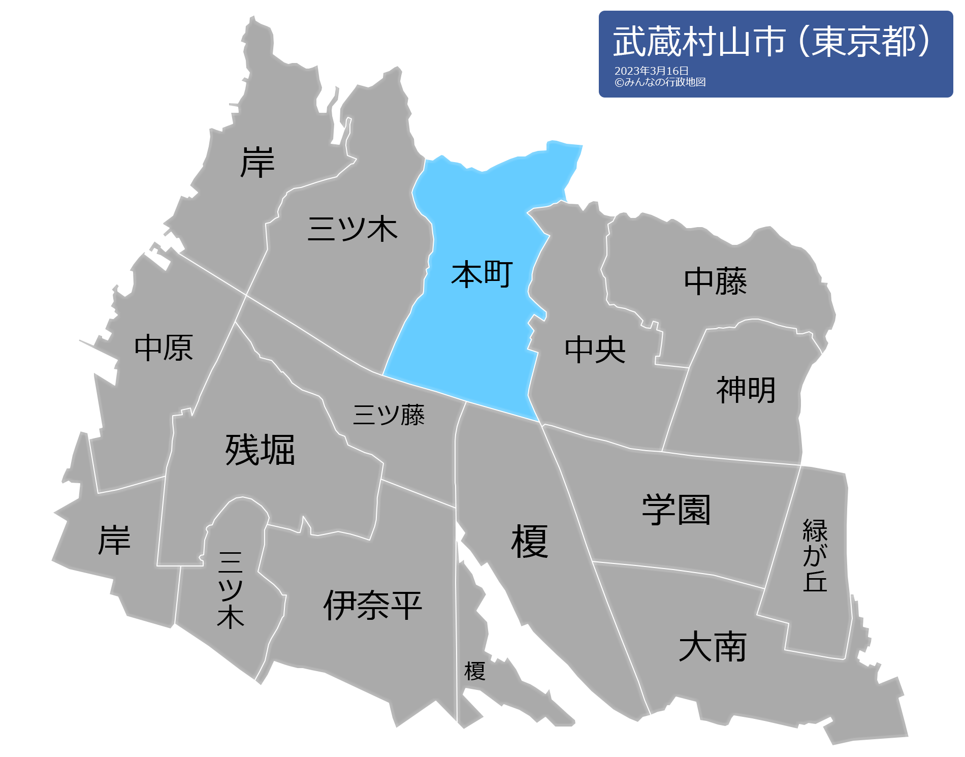 この武蔵村山市の行政地図は、