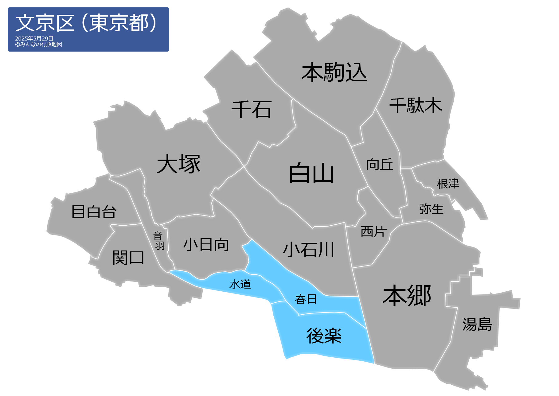 この文京区の行政地図は、