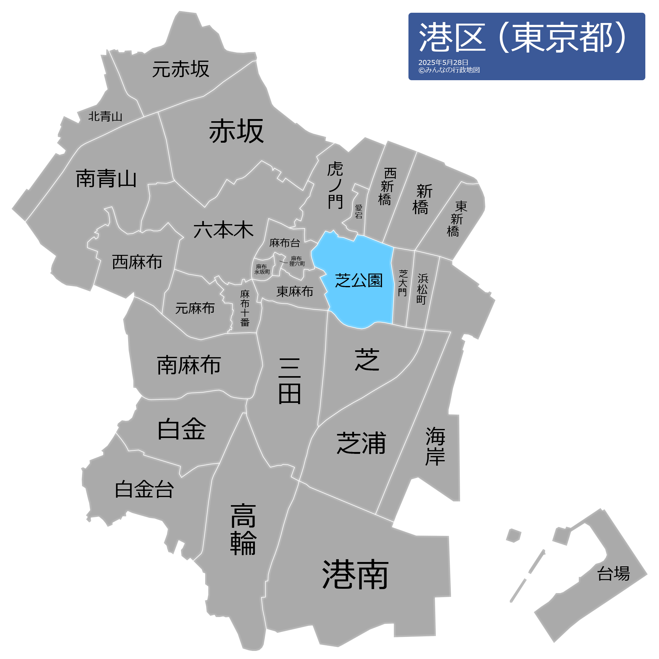 赤坂(あかさか)麻布十番(あざぶじゅうばん)麻布台(あざぶだい)麻布永坂町(あざぶながさかちょう)麻布狸穴町(あざぶまみあなちょう)愛宕(あたご)